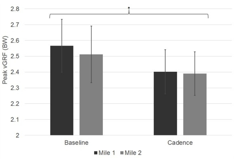 Figure 2: Baseline vs. increased cadence run peak impact forces