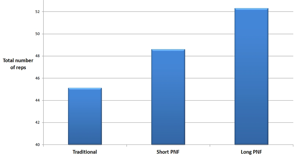 Figure 1: Total reps in leg extension with short and long PNF vs. none