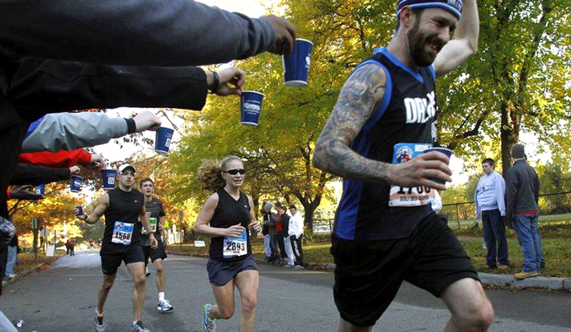 For a 70kg runner running at this pace, the approximate energy burn rate is around 1,000kcal per hour. In warm conditions it would take over 1.5 litres per hour of sweat evaporation to remove the extra heat generated. When you take into account the fact that some sweat will drip off the skin without contributing to evaporative cooling, it is easy to see how runners can lose two litres of fluid per hour or more in hot conditions. And since fluid losses of just 2% of body weight (that’s 1.5 litres from our 70kg runner) can cause a significant drop in performance, our mythical runner could be in trouble in less than an hour without taking extra fluid on board!