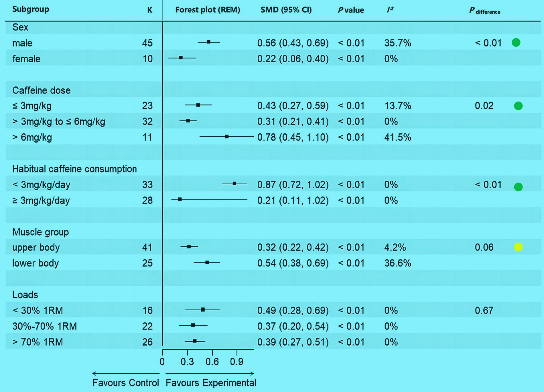 · Secondly, there was a lack of subgroup analyses by sex, dose, and habitual caffeine consumption, which may moderate the effectiveness of ingested caffeine(20). In other words, this analysis wasn’t able to determine whether or how the amount of pre-exercise caffeine you ingest, your sex or your habitual caffeine intake (ie tea and coffee intake) might affect the benefits you receive.