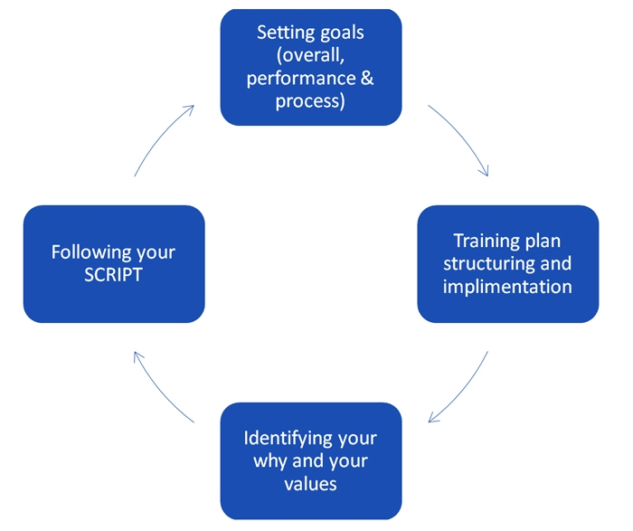To train methodically, make the most of the process goals you have developed as part of your goal setting. Incorporating these processes and activities diligently into your training plan and day to day life will mean you feel more confident you are in control, and that you are focusing on the right things. Write these process goals down at the front of your training diary and review every week.