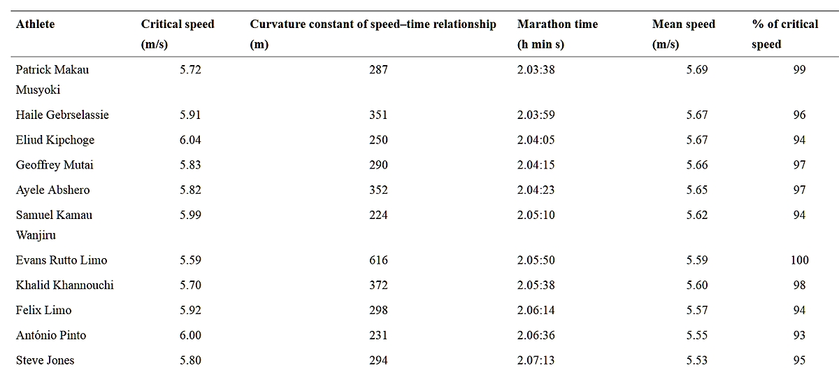 (4). They then examined the best marathon times for these marathon runners and calculated how close to critical speed the runners ran during those marathons (see table 1).