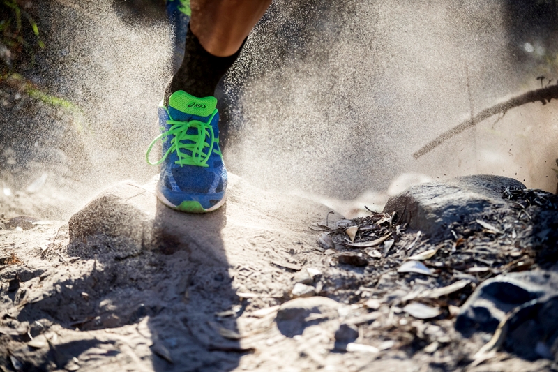 - On downhill sections, be prepared to constantly vary your stride length depending on the slope. This can range from a long or bounding stride, to very short step-like movements on very steep slopes. Keep your arms outstretched and loose for balance, and don’t lean back too far as this actually impairs grip and balance. Tree roots, ruts, loose stones or gravel and wet rocks can cause you to trip, stumble or turn the ankle. Landing with a mid-foot stance can improve grip by ensure better stud contact on the ground. Look 2-3 strides ahead to see and negotiate what’s coming but don’t look directly down at your feet. If the gradient is extreme, beginners may find it helps to descend the steepest most uneven parts with a ‘side stepping’