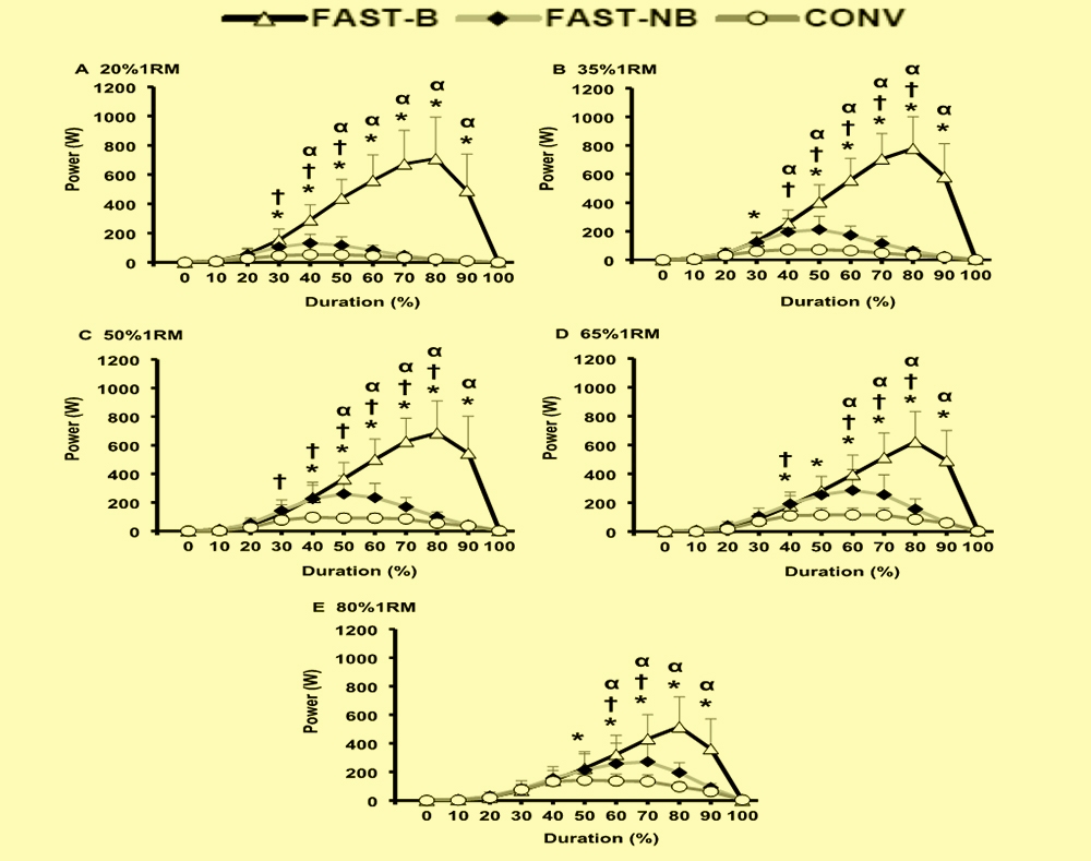 What should be noted in addition is that the ‘fast’ contraction style, where the subjects moved the loads as fast as possible without releasing them, was also superior to the standard contraction style in almost every test. This re-affirms previous research highlighting the value of power training. Clearly, moving the resistance quickly is a superior option as compared to moving the resistance in a slow manner.