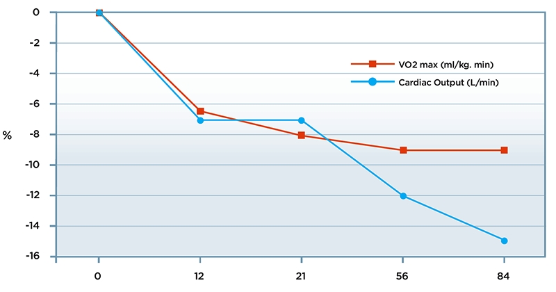 Figure 1: Typical % decline in aerobic fitness over 84 days of inactivity