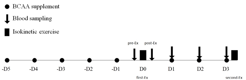 published in the Journal of Physical Activity and Nutrition, twelve fit men with majors in physical education were assigned to a BCAA supplementation group and placebo group in a double-blinded design. The BCAA group took BCAA supplements, which were administered twice daily from five days before a bout of severe exercise (to induce DOMS) and for 72 hours after the exercise, for a total of 8 days. The supplements were consumed twice daily – a pouch before breakfast and one before lunch. Each pouch contained 3 grams BCAAs. The placebo group meanwhile took inert supplements containing no BCAAs.