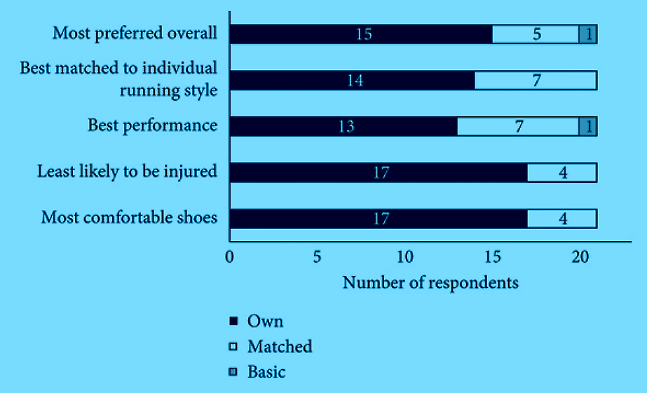 Published in the journal ‘Translational Sports Medicine’, the goal of this study was to investigate how an ‘expert’ shoe recommendation resulting from a gait analysis affected runners’ perceptions of subjective comfort while running in those shoes, and also whether the runners might subtly change their running gait following a shoe recommendation compared with wearing a shoe that hadn’t been recommended(15). The researchers hypothesised that runners would score and rank so-called gait‐matched shoes more favourably than shoes that they believed weren’t gait matched, but were in fact identical to the so-called gait-matched shoes! In short, if you are told that a running shoe has been scientifically matched to your own gait, can that recommendation alone change how the shoe feels and your running movement patterns?