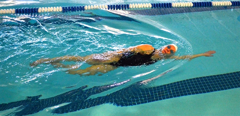 To start playing around with rhythm and the amount that you kick within your stroke, you can do six kicks to one pull or six kicks to three pulls (some swimmers may know this as 6-1-6 or 6-3-6). Start in the side-kicking position from above, and do six kicks, then take one stroke and roll on to the other side. To do six kicks to three pulls, take three normal full strokes between sets of six kicks.