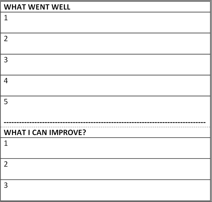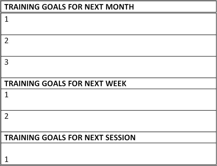 The next part of the task is to take the three areas for improvement and reframe them as three goals for the next month (or preseason). Once this is done you can simply throw away these three areas of improvement. There is no need to look at these again or dwell on them. You have a plan to address them. You can just revise your strengths and work your plan for the next month, week and session.