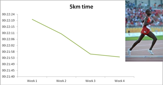 The final thing we did was hold Kevin accountable at our training sessions; he had to bring his lead measures chart with him, and rather than talk about his 5km time, we all asked him about his 500m surges and his hill sprints. If he started to talk about his 5km time or his 10mile time, we told him to stop! This may sound simplistic, and perhaps a tad harsh, but we had to try and get Kevin focussed on things that would help him achieve his goal. However, the results showed this focus worked as he reduced his 5km time by 24 seconds in just four weeks.